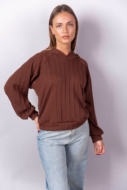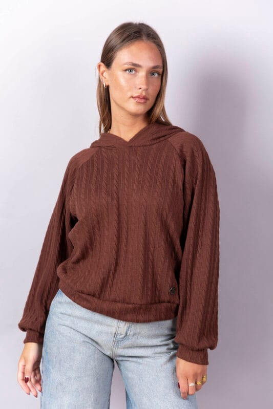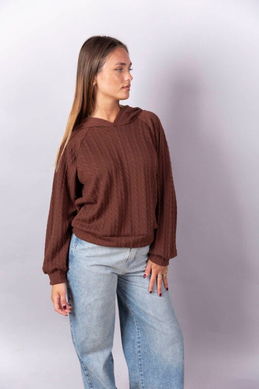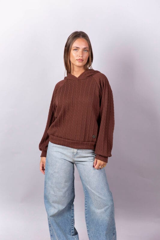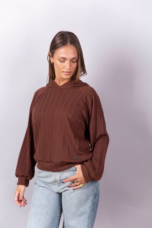 Buzo manga raglan, con puños y cintura en la misma tela.