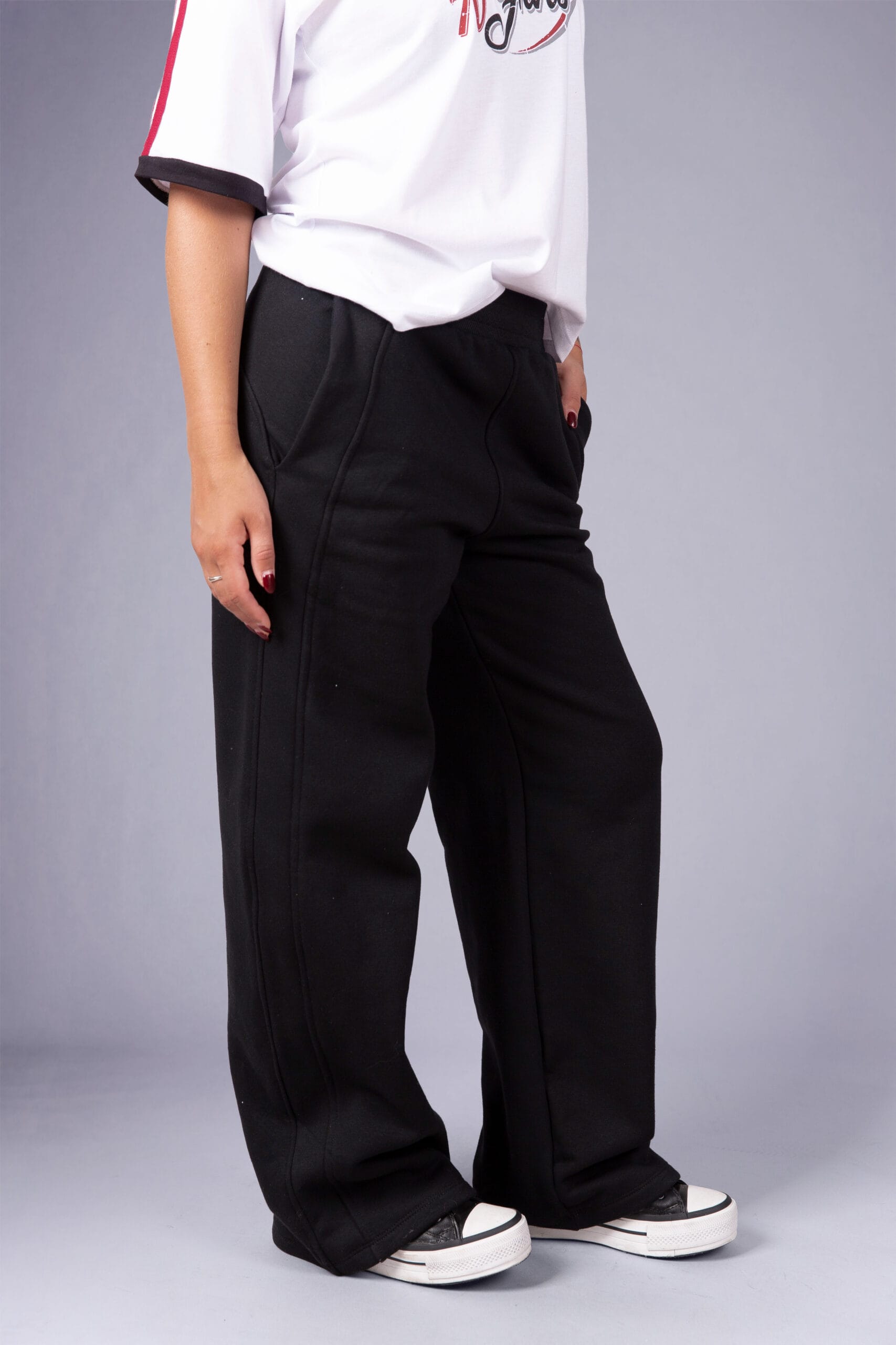 Babucha de frisa gruesa con bolsillo ojal, recto, con cintura elastizada.