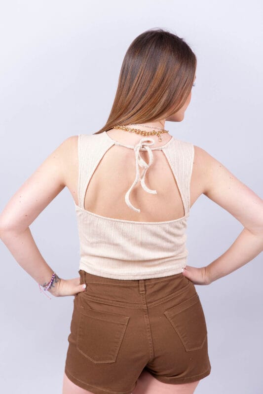 Musculosa de bretel ancho con tiras para atar en la espalda.