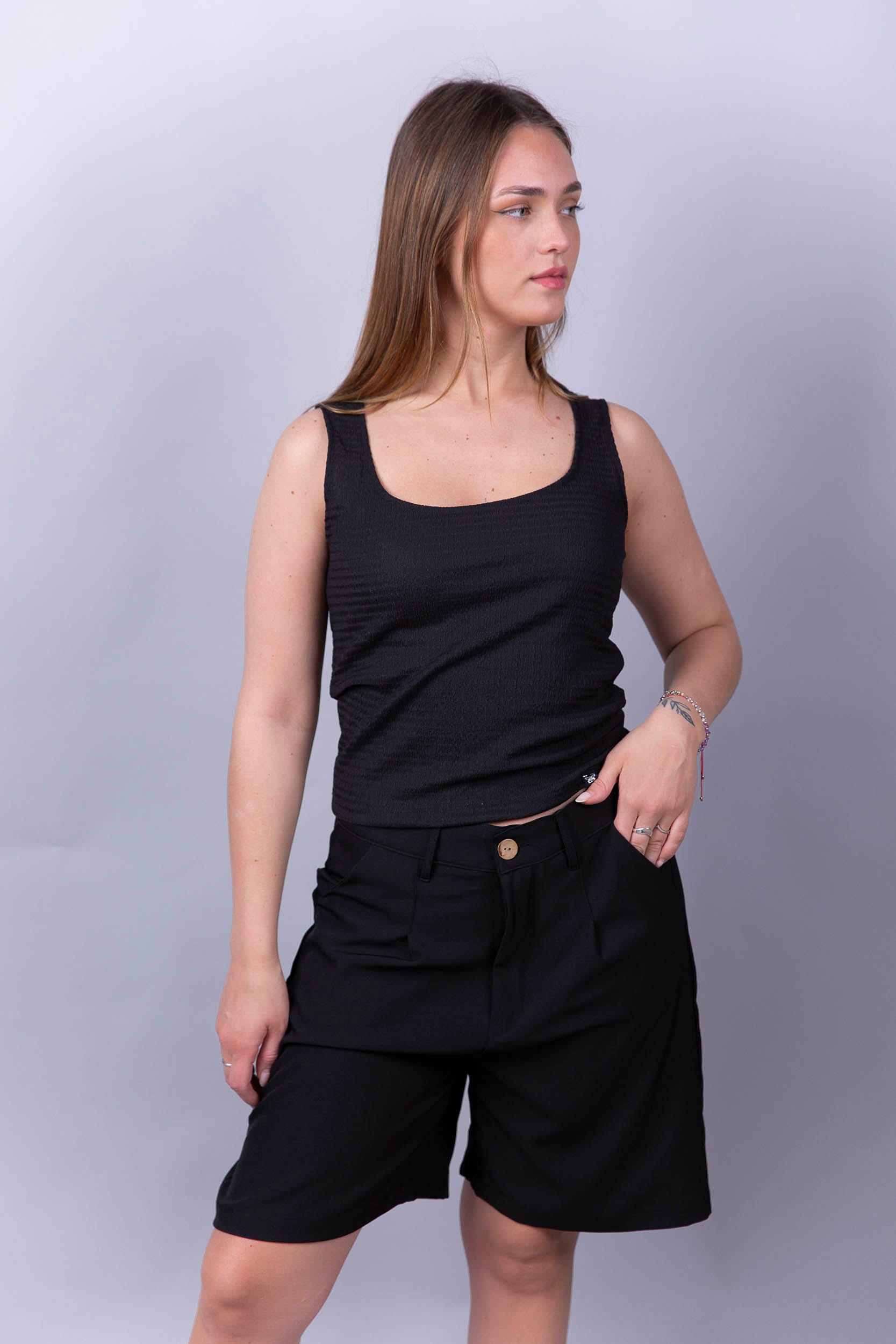 Musculosa con escote cuadrado, tela crepe.