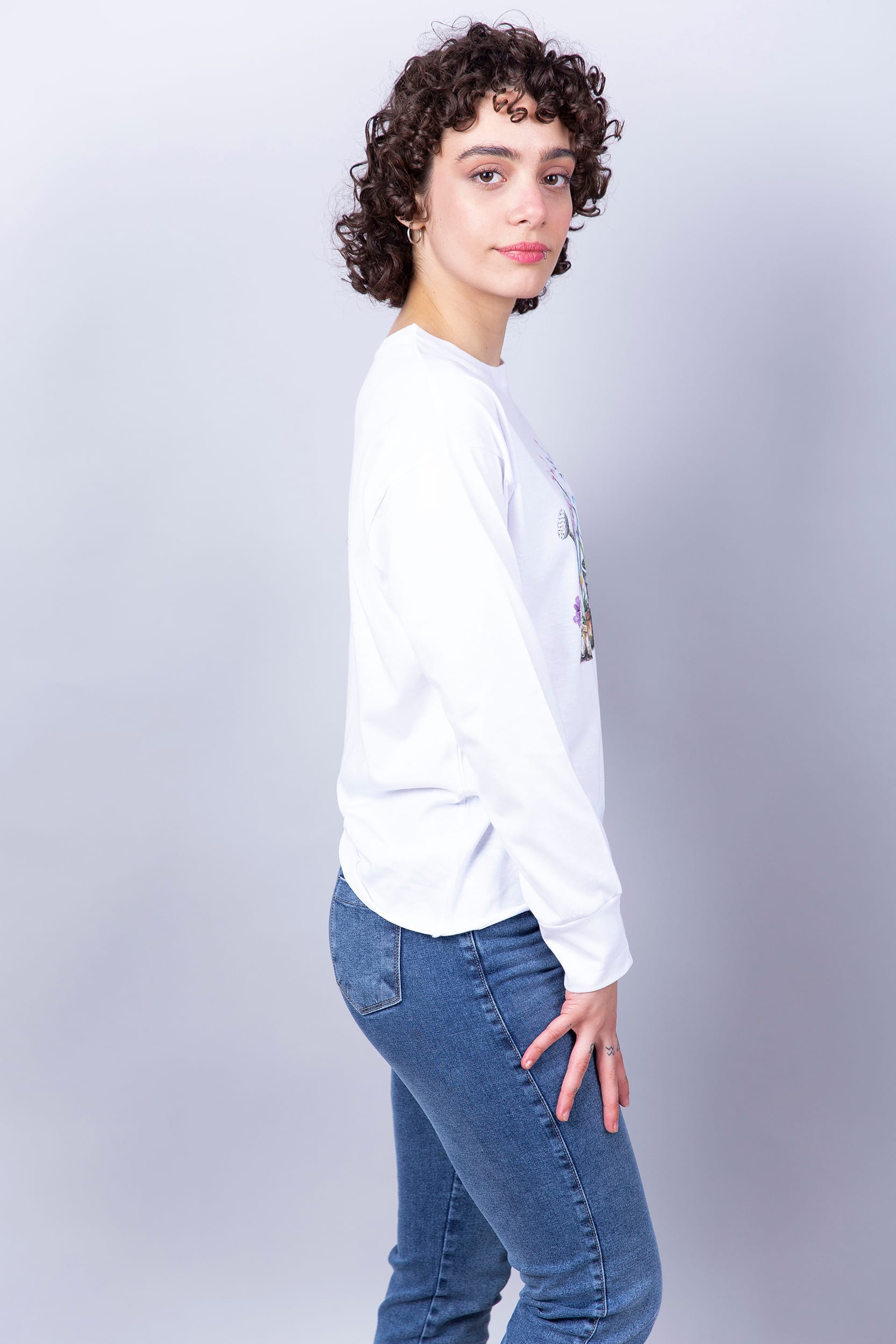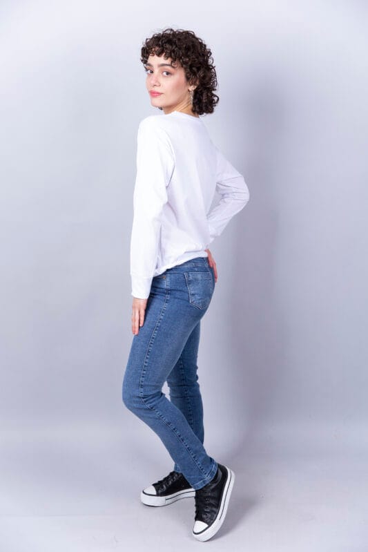 Remera manga larga, cuello redondo de algodón, con puño en mangas.