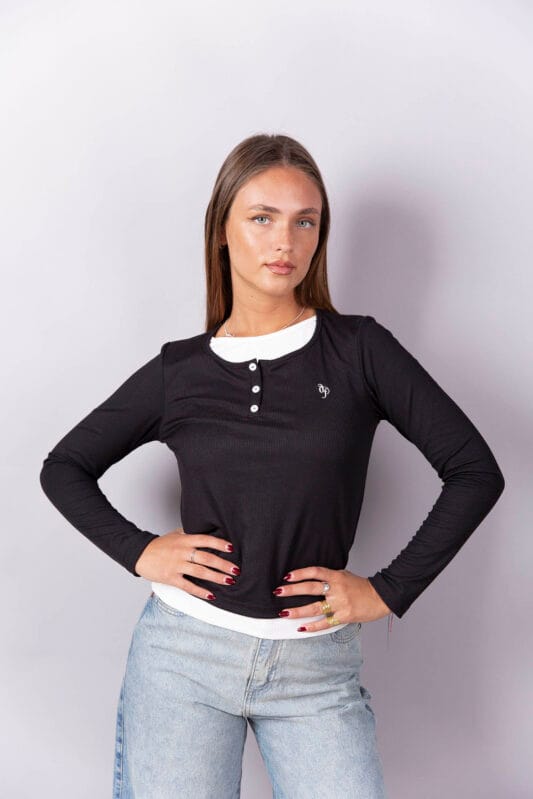 Remera manga larga de morley, efecto doble.