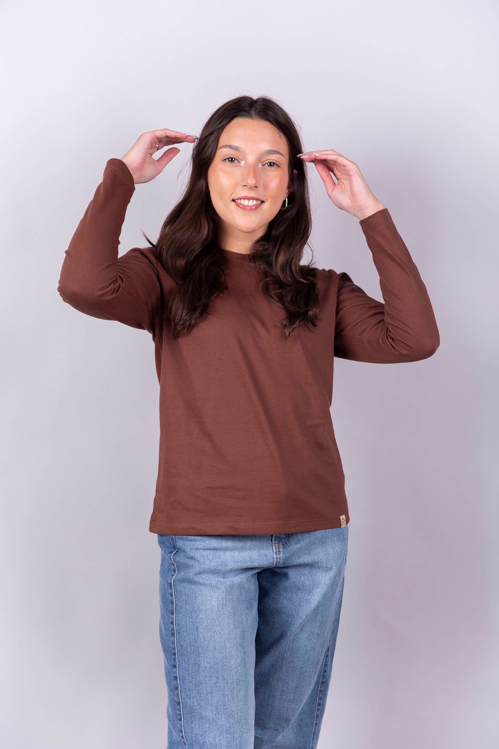 Remera de algodón basica manga larga, cuello redondo.