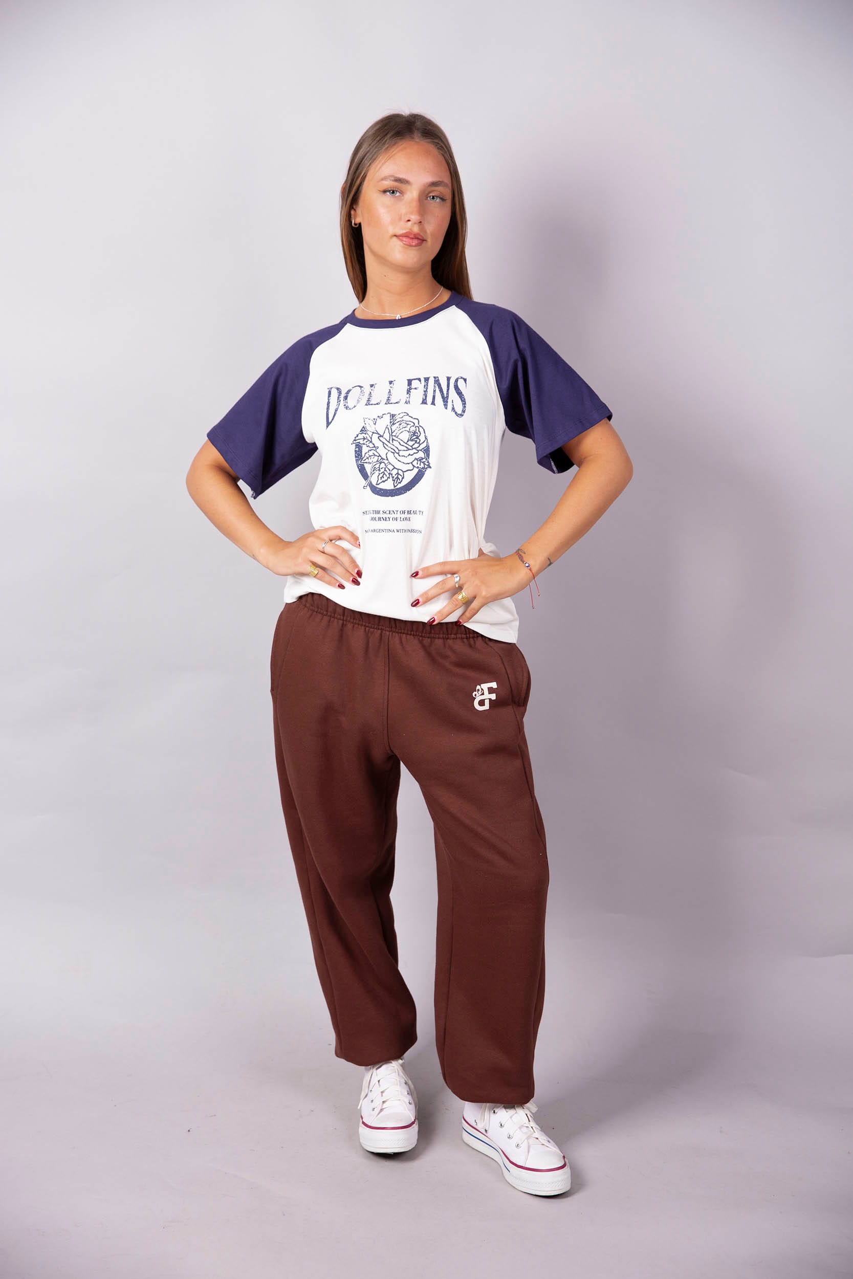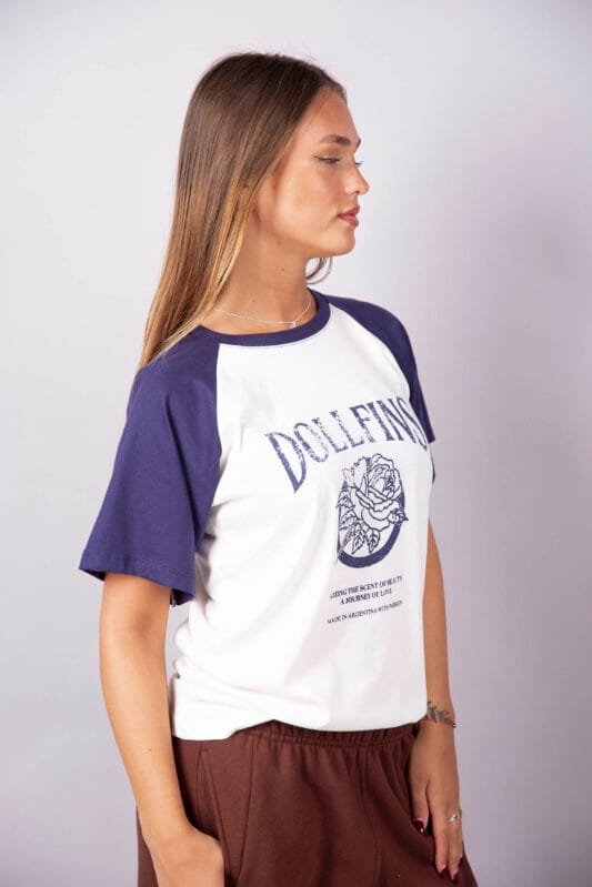 Remera de algodón, cuello redondo, con mangas combinadas.