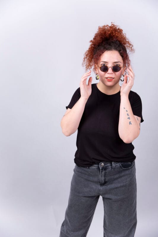 Nuestra modelo usa el talle Large.