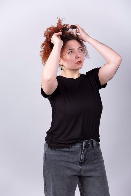 Remera corte básico de Morley viscosa, con terminaciones en roulotte.