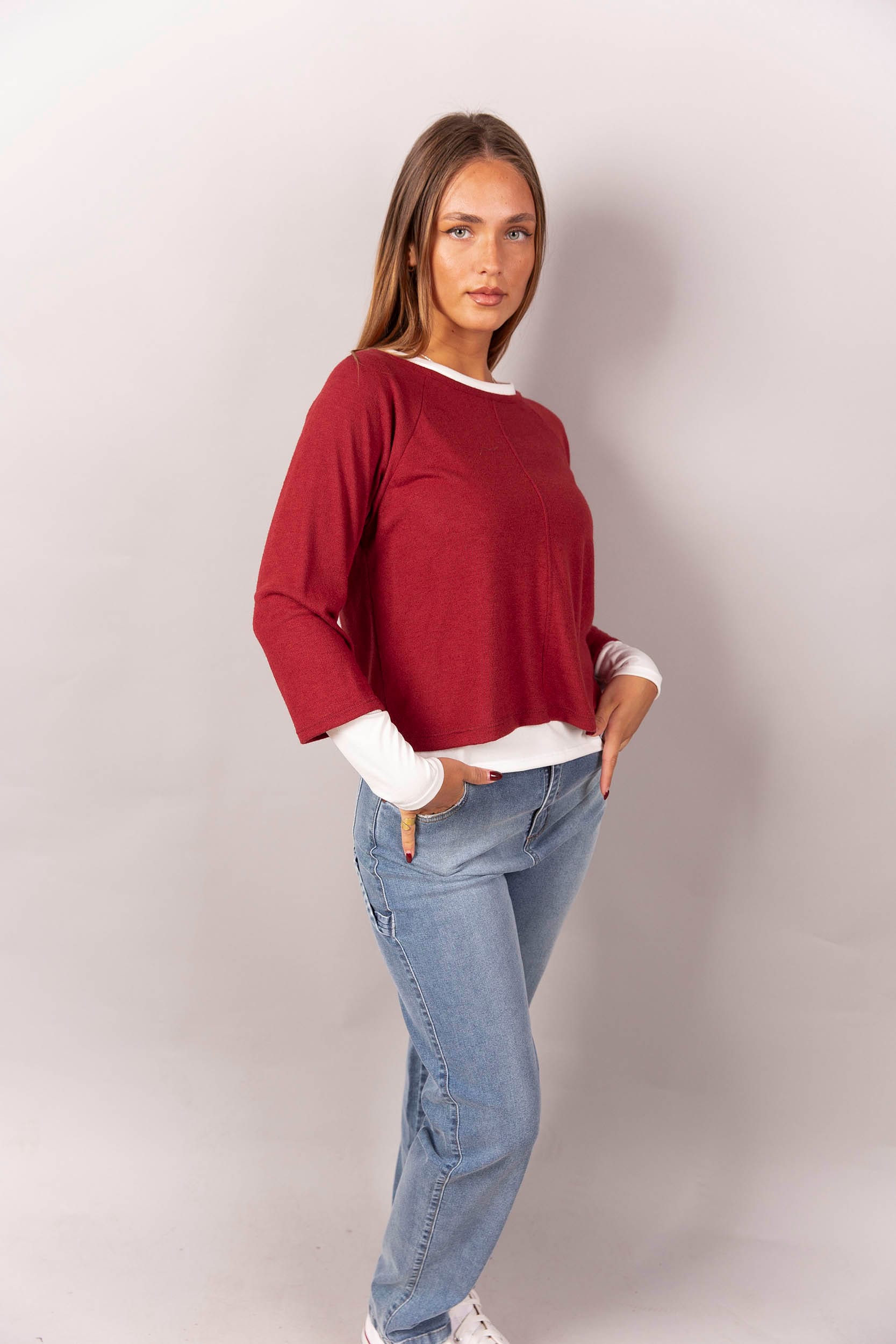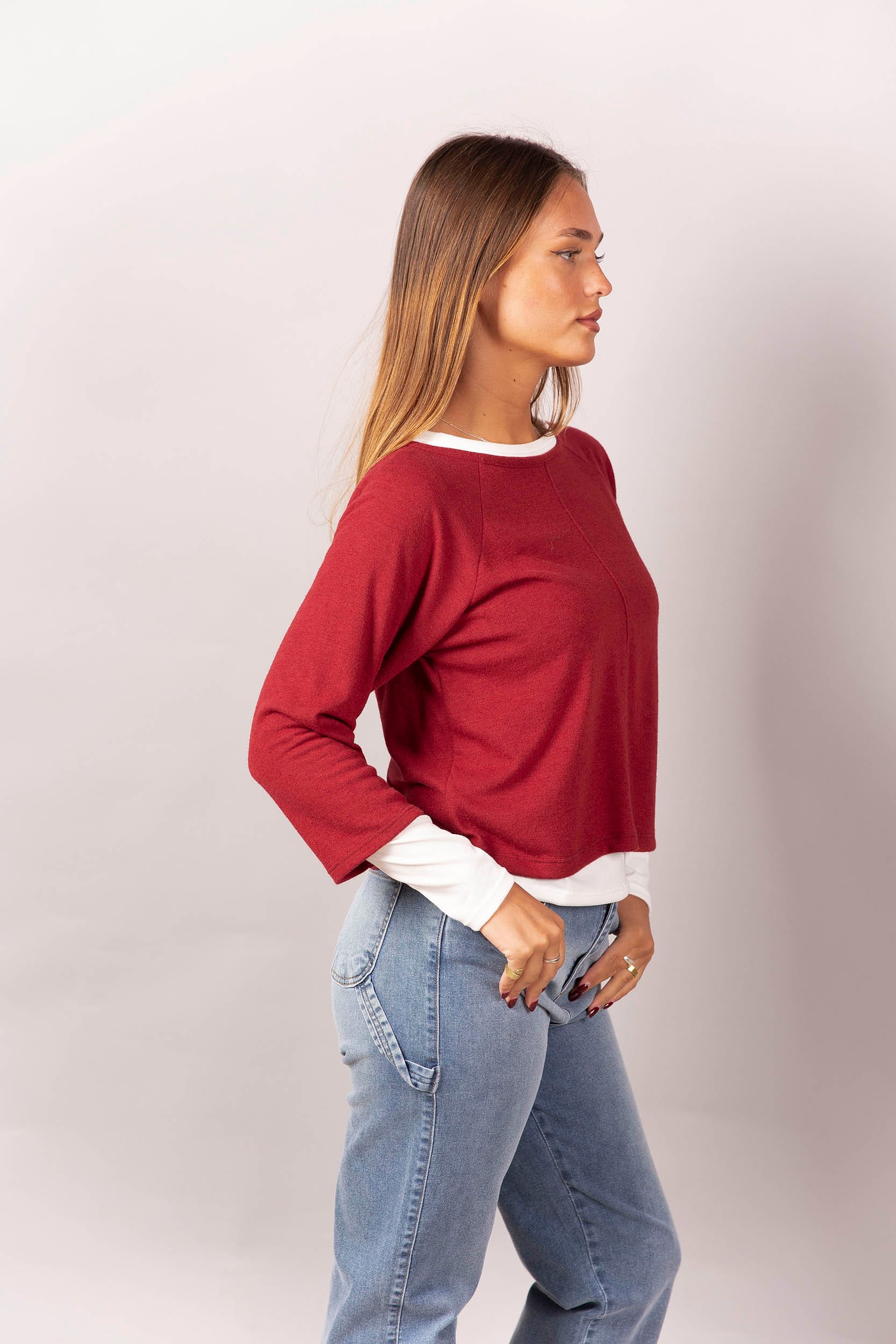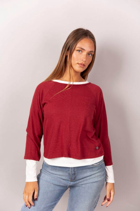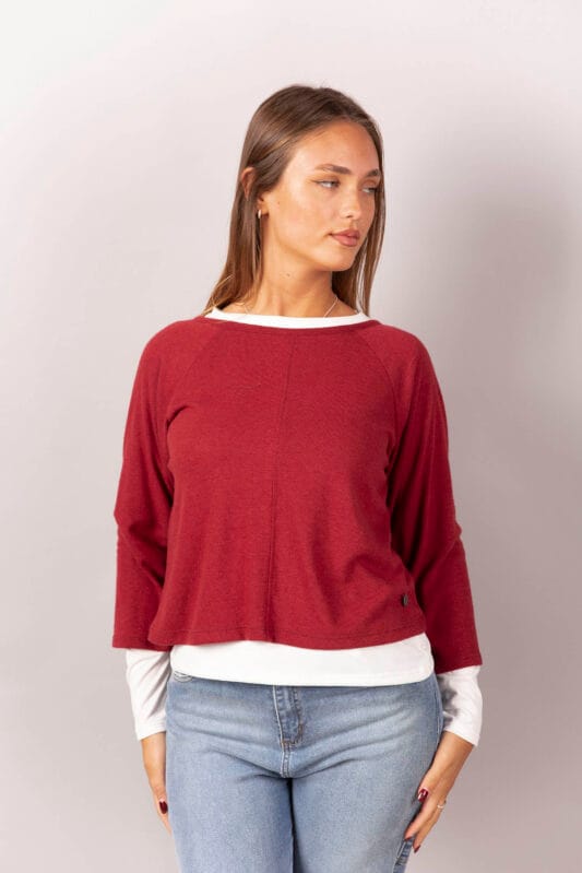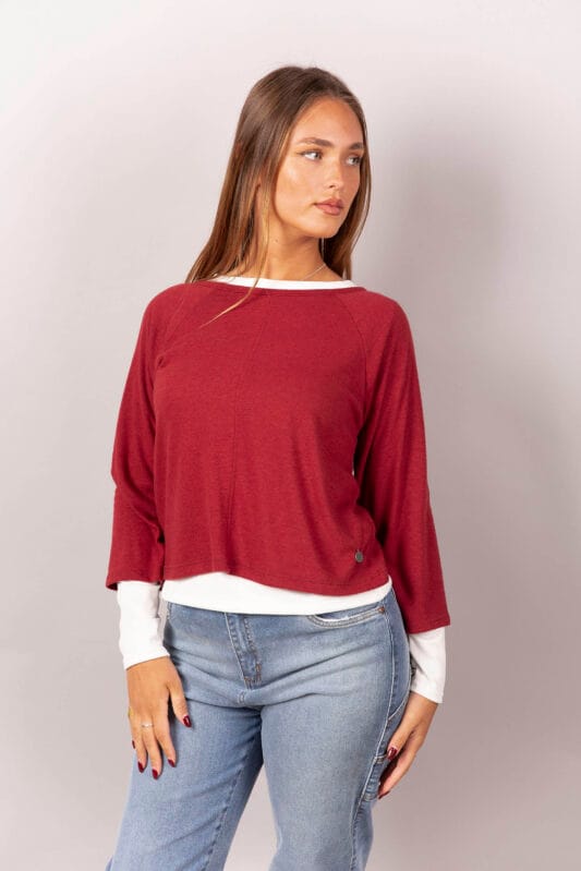 Sweater de lanilla con remera de modal soft manga larga.