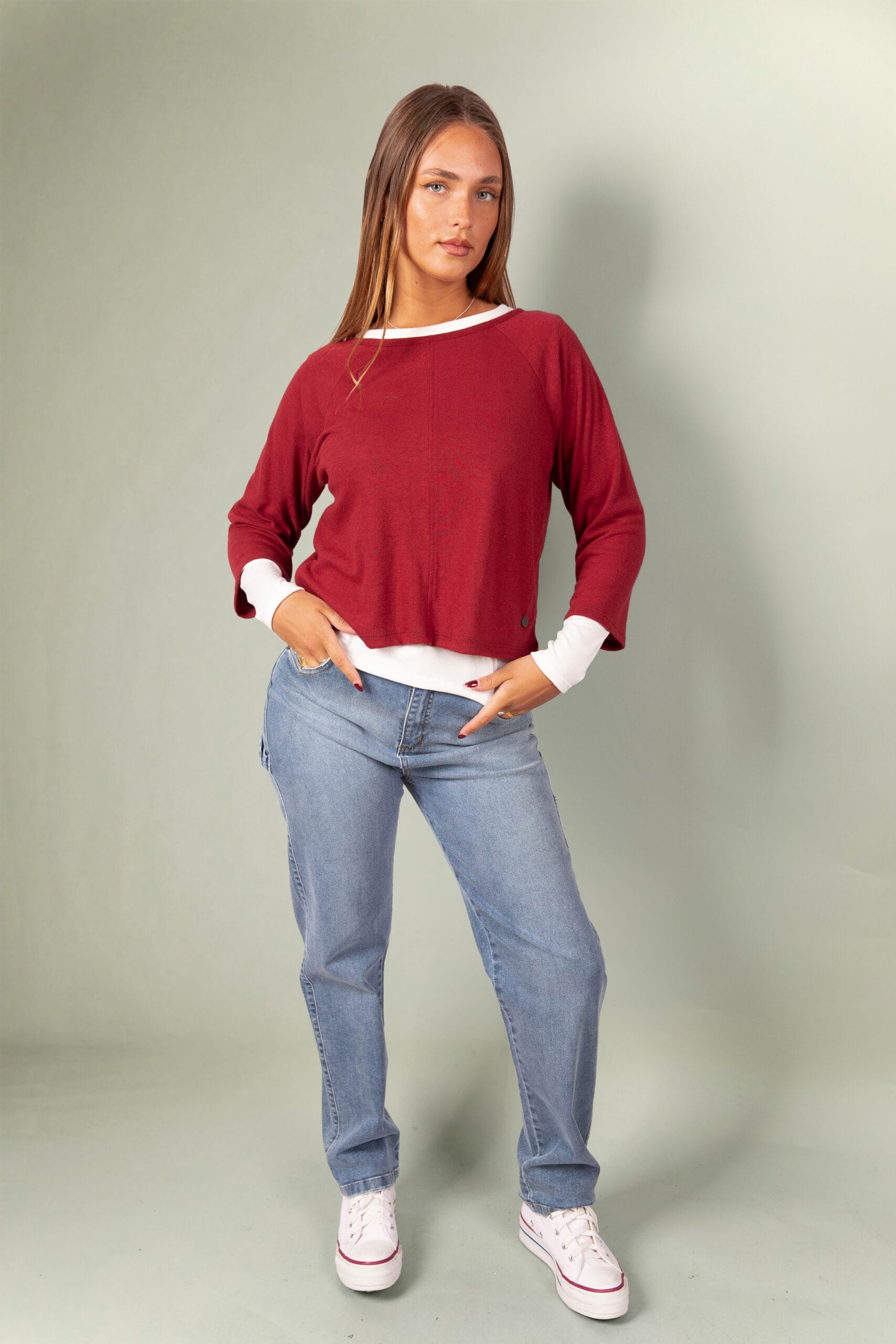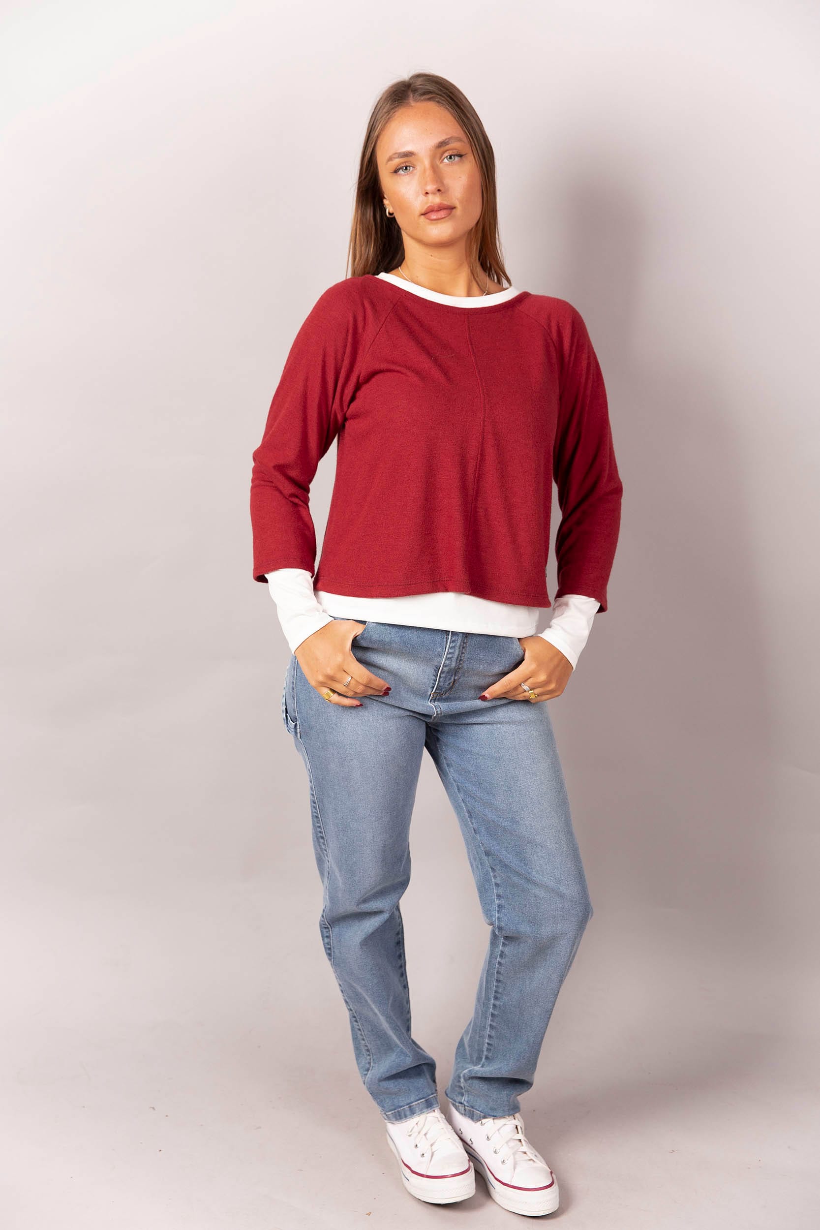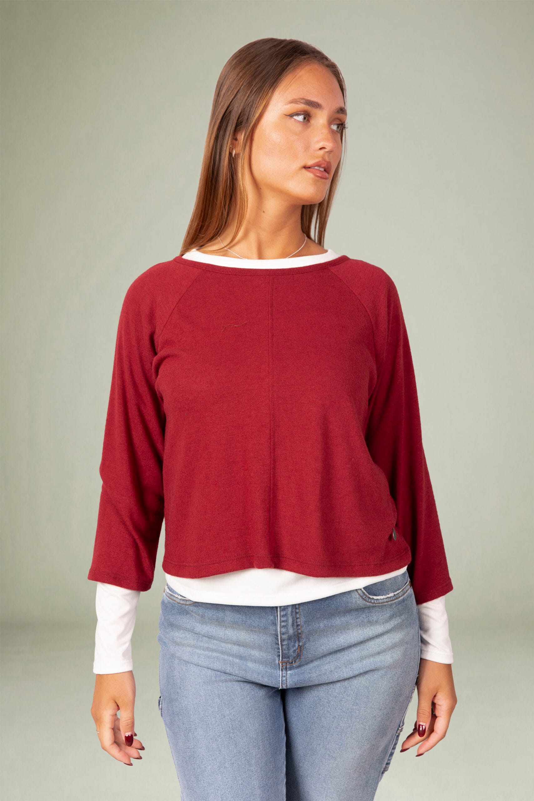 Sweater de lanilla con remera de modal soft manga larga.