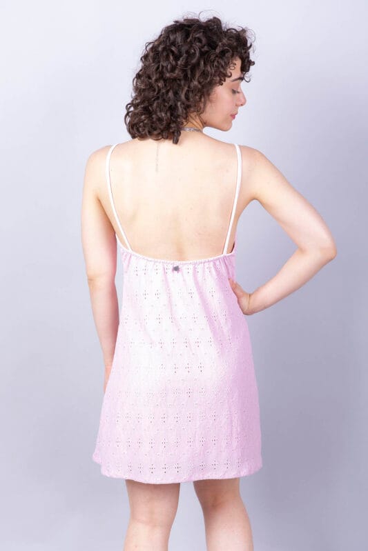 Vestido de broderie, forrado en algodón.